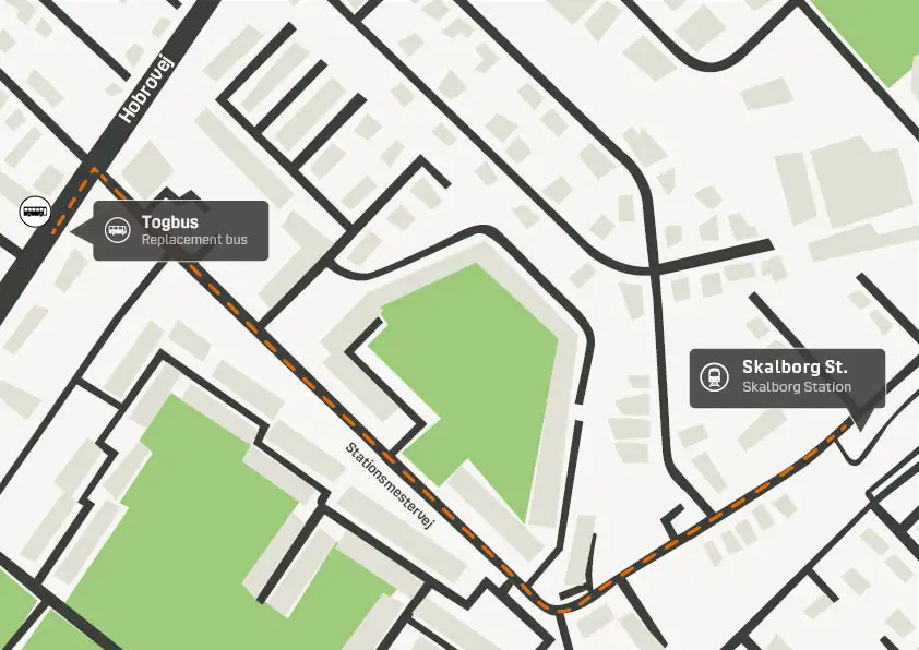 Klik på nedenstående stationer og se kort over hvorhenne du finder stoppestedet for togbus på hver enkel station.